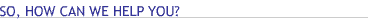 SO, HOW CAN WE HELP YOU